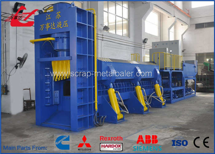 Dieses Altmetall scheren Ballenpresse ist fähig zu den verschiedenen dünnen Materialien kalten Drückens Metallmit der Stärke kleiner als 3mm in rechteckige Ballen in Normalzustand, wie überschüssigem Stahl, Alteisen, Drahtstahl, etc. Außerdem schneidet diese Maschine den rechteckigen Ballen in erforderliche Länge, einschließlich das Stahlprofil, das nicht länger als 5m ist. Sie macht die überschüssigen Metallmaterialien bequem für Lagerung und Transport. Diese Maschine ist auch in der Lage, qualifizierte Ofenbeschickung für Metallschmelzanlage anzubieten.